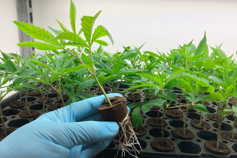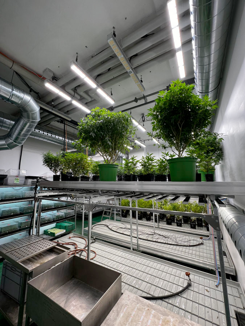 In the pre-crop station, the young plants acclimate to their new environment. Here they grow their first centimeters and develop into strong, healthy plants before being moved to the flowering room.